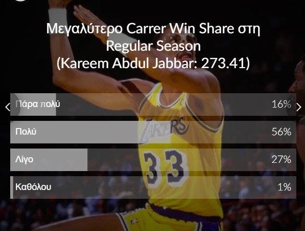 Λιγότερο σημαντικό αξολογήθηκε από την ψήφο σας το win share στην καριέρα κάποιου, αλλά και το win share ενός παίχτη στα playoffs.